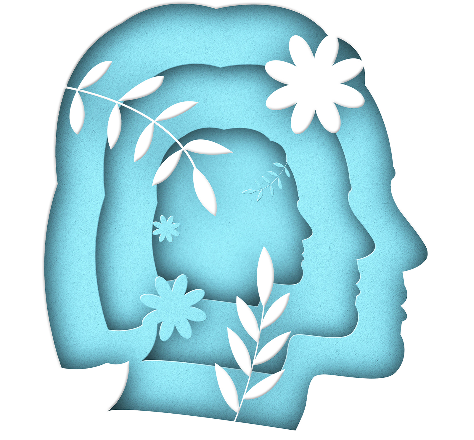 Seven ways to clean your mind for spring. Illustration playing with the concept of paper cutouts and illustrating the negative space.